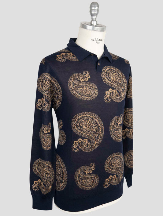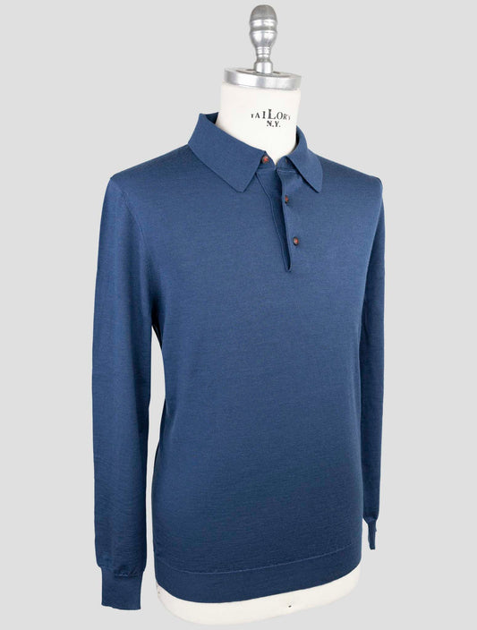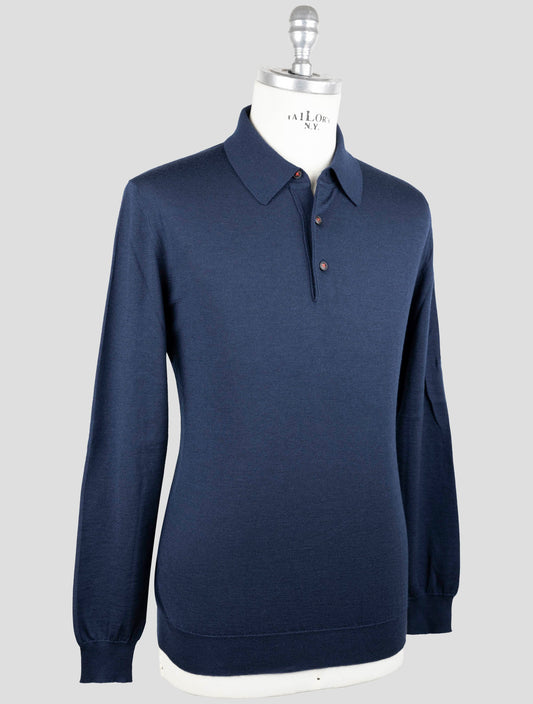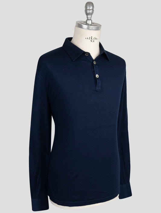 Kiton Blue Cotton Stretch Polo Sweater - Italian Made