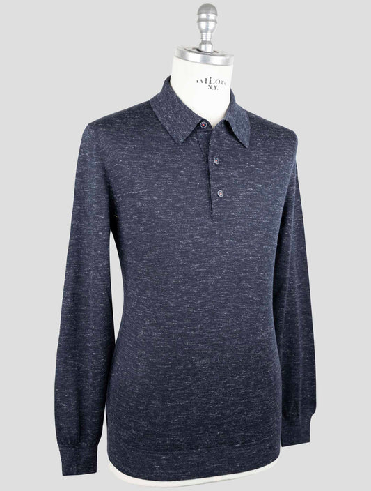 Kiton Blue Cashmere Silk Polo Sweater - Italian Made Premium Knit