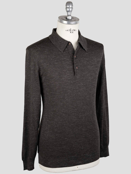 Kiton Brown Silk Cashmere Linen Polo Sweater - Italian Luxury