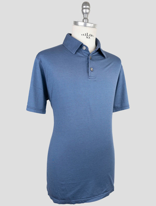 Kiton Blue Cotton Cashmere Polo Shirt - Italian Luxury Menswear