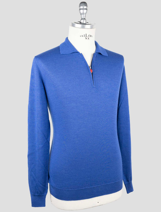 Kiton Blue Cotton Elastane Polo Sweater - Italian Made