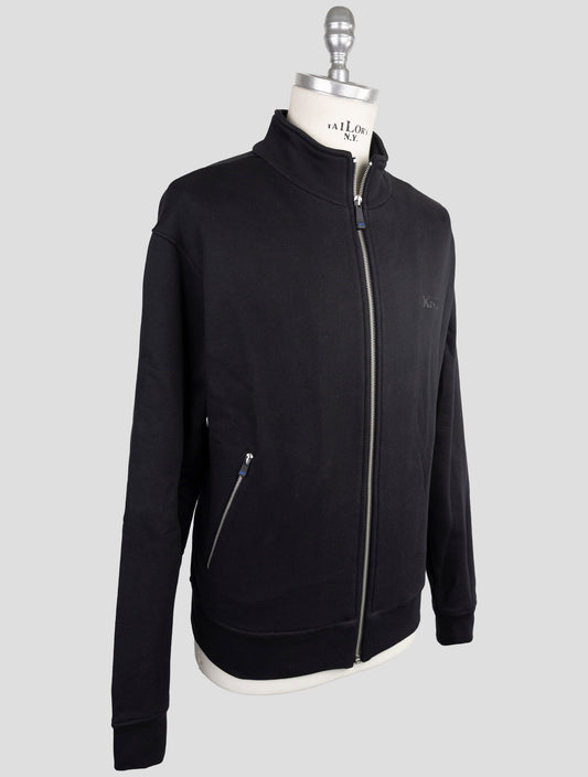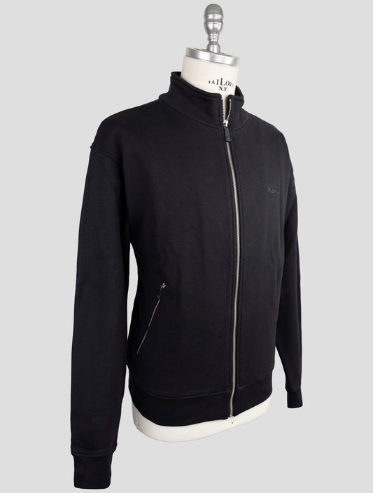 Kiton KNT Premium Black Cotton Full Zip Sweater Italian