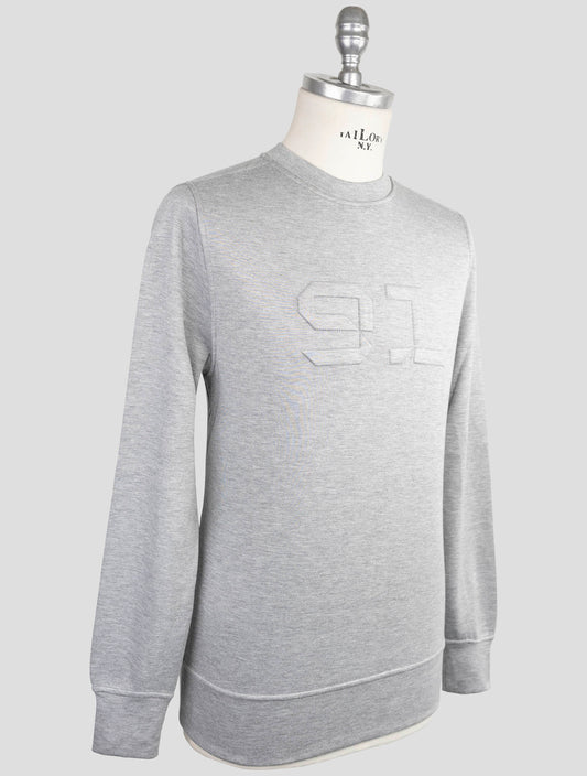 Kiton KNT Premium Cotton Crewneck Sweater Gray Italian Made