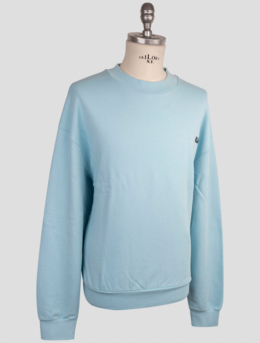 Kiton KNT Premium Cotton Crewneck Sweater Light Blue Italian