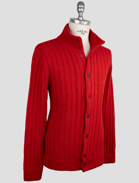 Kiton KNT Red Virgin Wool Cardigan - Italian Luxury Sweater