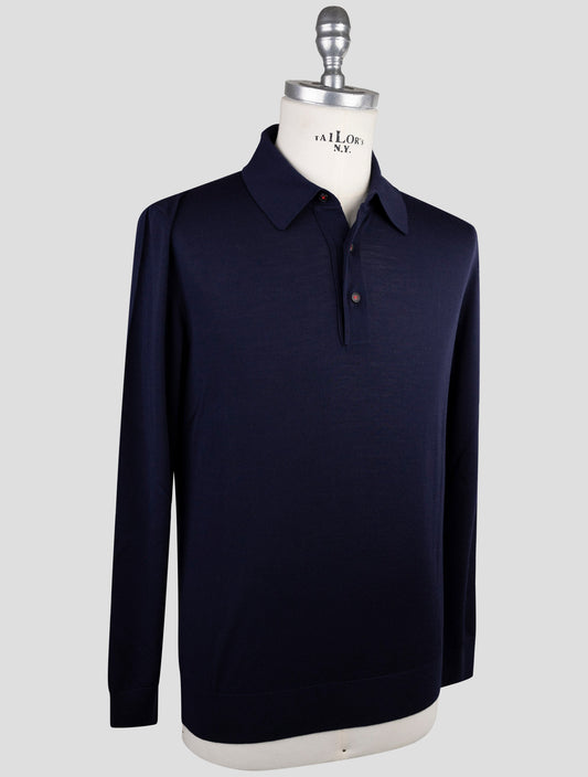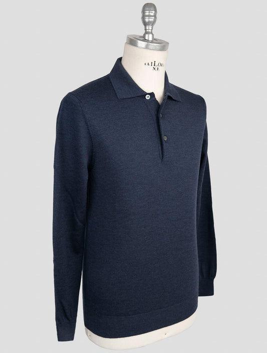 Kiton Blue Virgin Wool Polo Sweater - Italian Luxury Knitwear