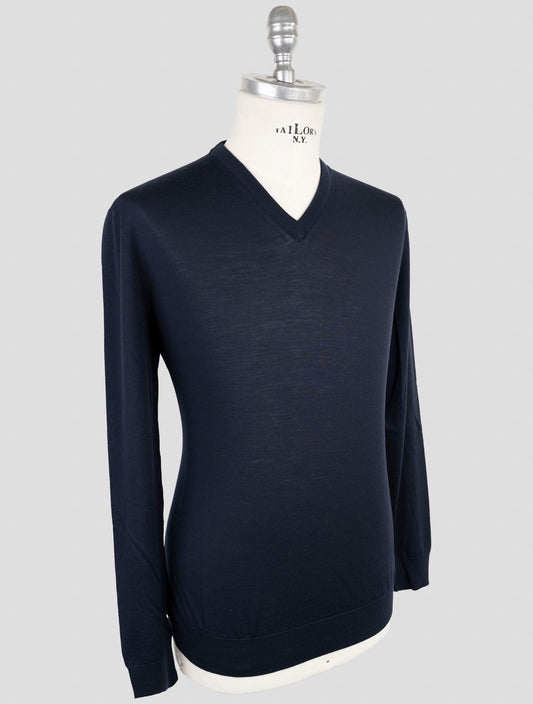 Suéter V-neck de Lana Azul Diamante 14 Micrones Kiton