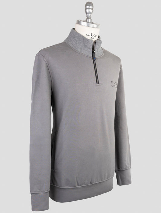 Kiton KNT Gray Cotton Half-Zip Sweater - Italian Handmade