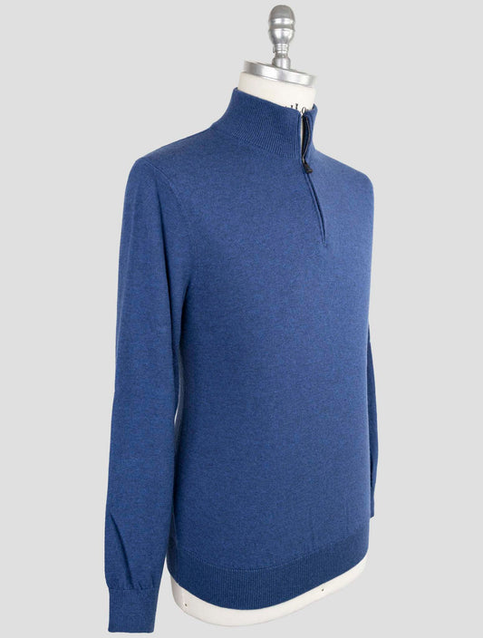 Kiton KNT Blue Virgin Wool Half-Zip Sweater - Handmade Italian