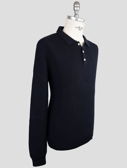 Kiton KNT Blue Cotton Silk Polo Sweater - Handmade Italian Knit