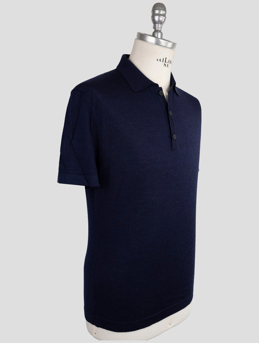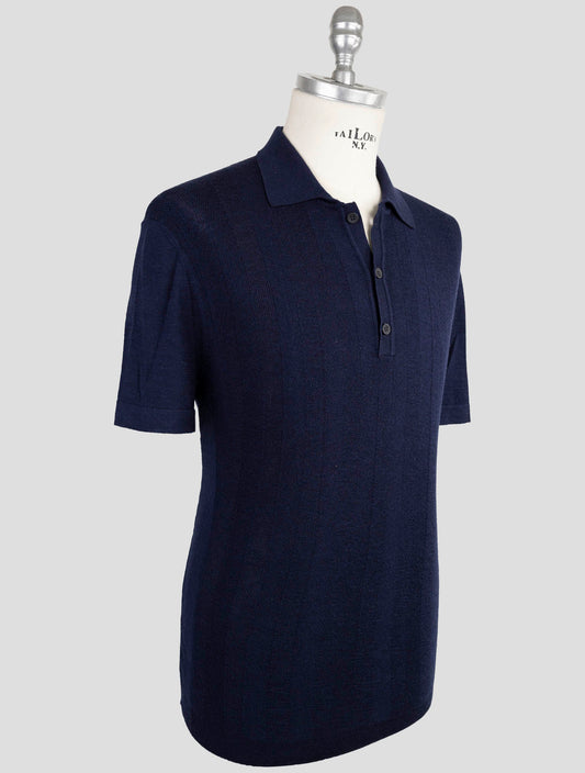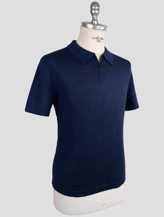 Kiton KNT Blue Virgin Wool Silk Polo - Handmade Italian Knit
