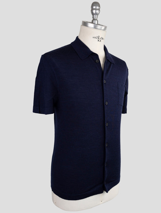 Kiton KNT Blue Wool Silk Short Sleeve Shirt - Handmade Italy