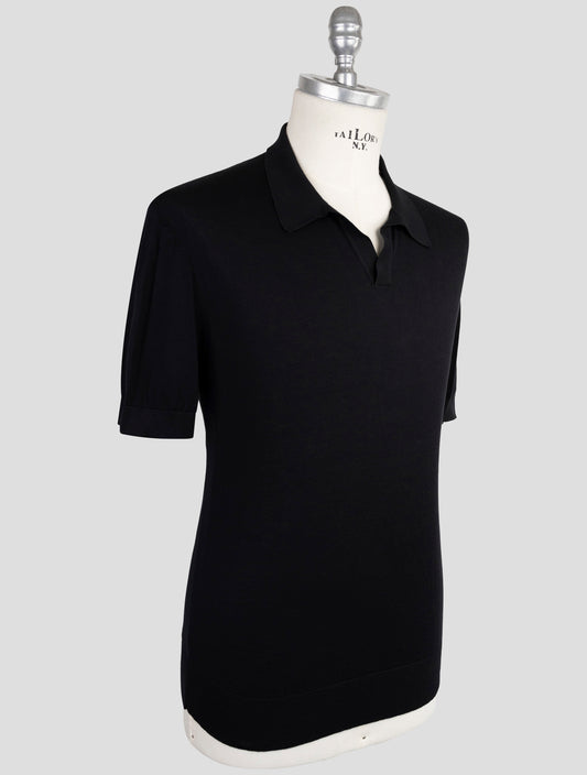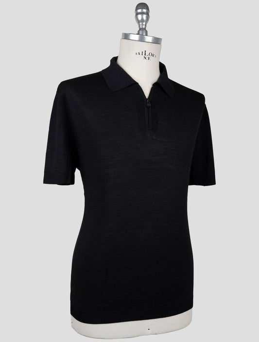 Kiton KNT Black Cotton Polo Shirt - Handmade Italian Regular Fit