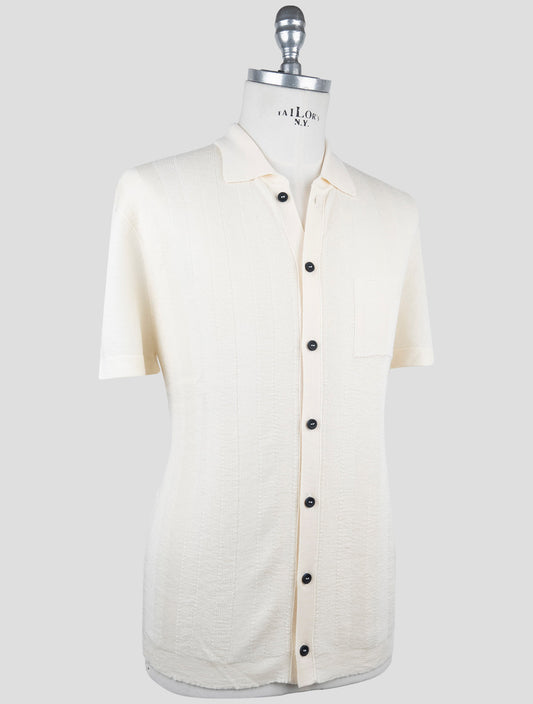 Kiton KNT White Virgin Wool Silk Short Sleeve Shirt Handmade Italy