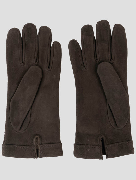 Kiton Brown Suede Leather Cashmere Gloves - Handmade Italian
