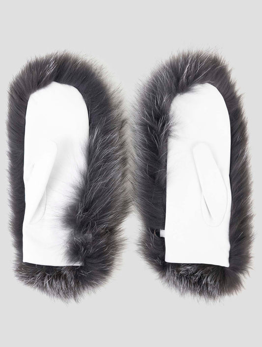 Kiton Gray White Leather Fox Fur Gloves - Luxury Italian