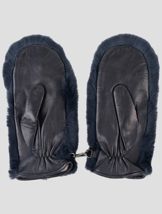 Kiton Blue Leather Rabbit Fur Gloves - Handmade Italian Luxury