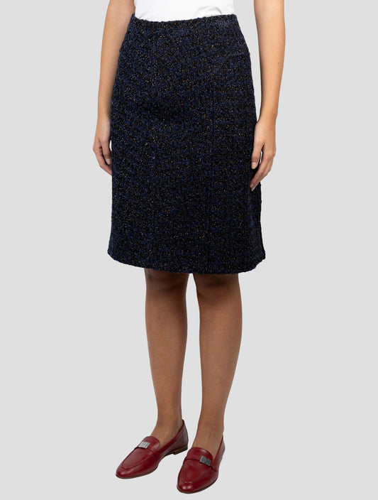 Kiton Virgin Wool Silk Blend Skirt Blue Brown Italian Made