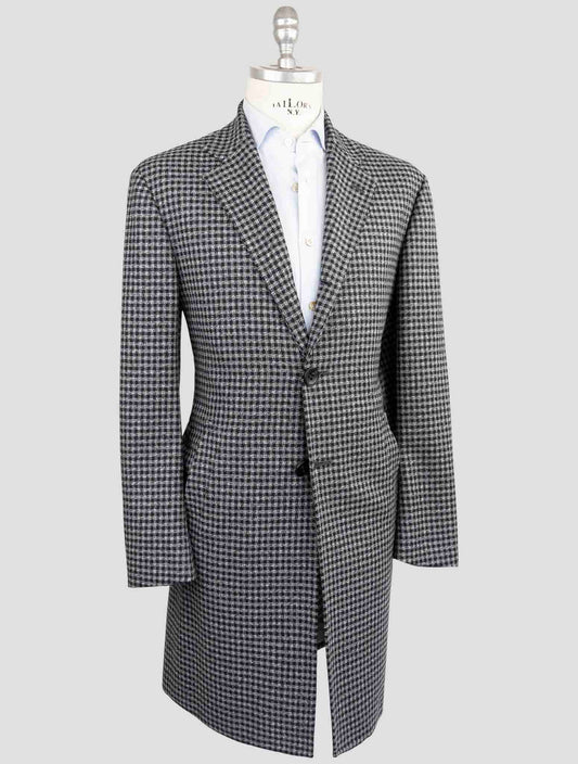 Kiton Premium Wool Hooded Overcoat Men's Gray Black Italian