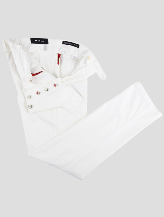 Kiton White Cotton Stretch Pants - Handmade Italian Trousers