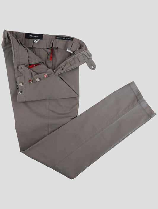Kiton Handmade Taupe Cotton Silk Elastane Italian Dress Pants
