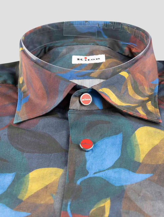 Kiton Cotton Floral Shirt Italian Handmade Premium Multicolor