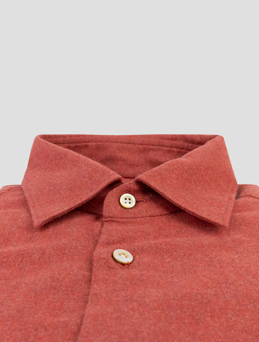 Kiton Red Cotton Dress Shirt - Handmade Italian Men's Regular Fit