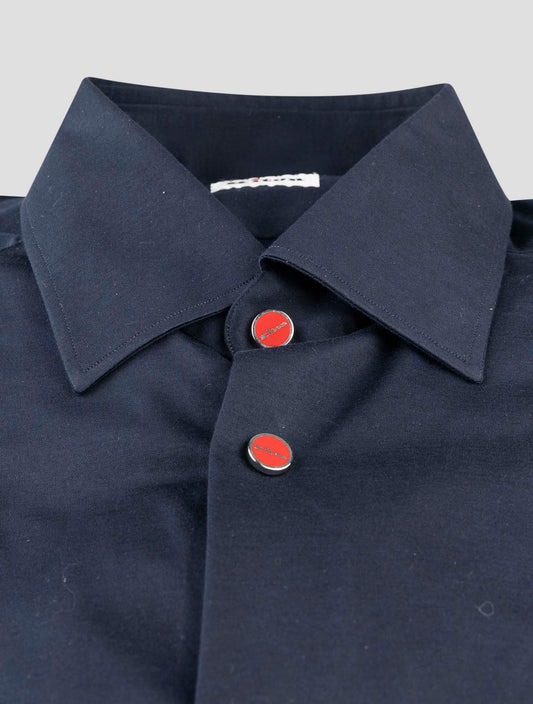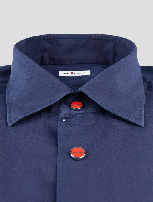 Kiton Blue Cotton Dress Shirt - Handmade Italian Regular Fit