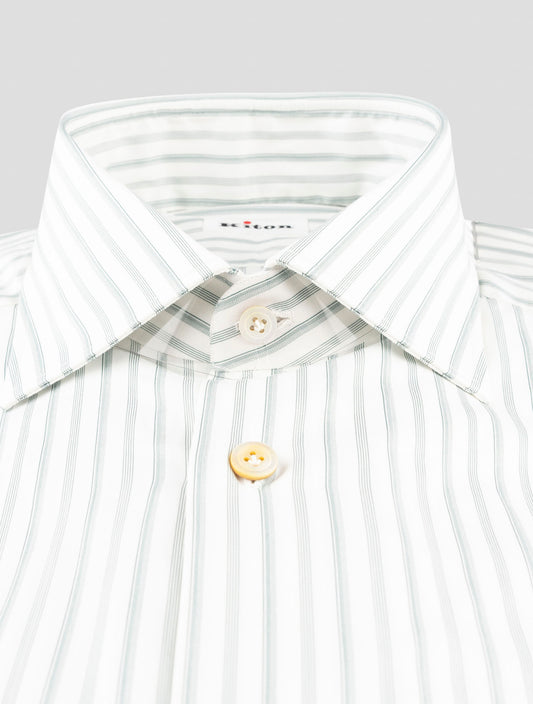 Kiton Premium Cotton Striped Dress Shirt Light Blue White Italian
