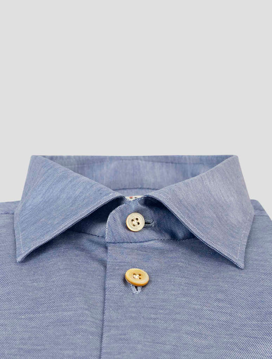 Kiton Handmade Premium Cotton Blue Dress Shirt Italian Crafted