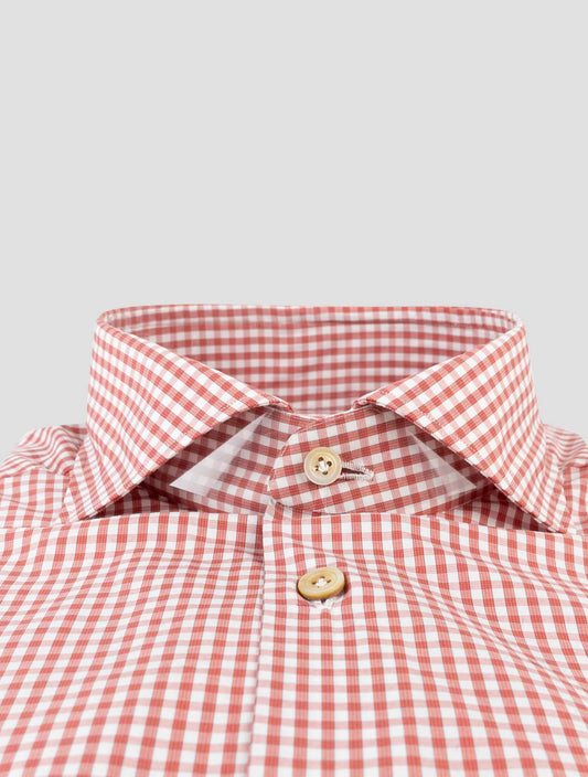 Kiton Handmade Red White Plaid Cotton Shirt - Italian Luxury