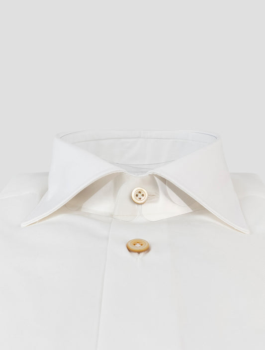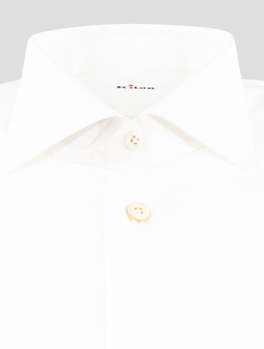 Kiton White Cotton Dress Shirt - Handmade Italian Regular Fit