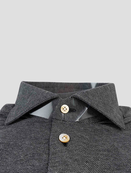 Kiton Gray Cotton Dress Shirt - Handmade Italian Regular Fit