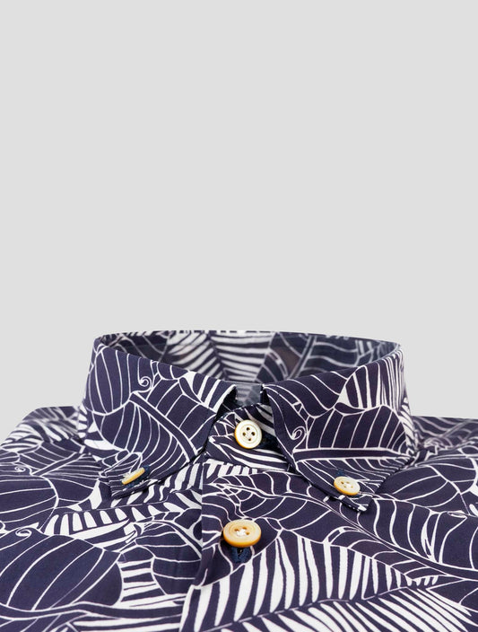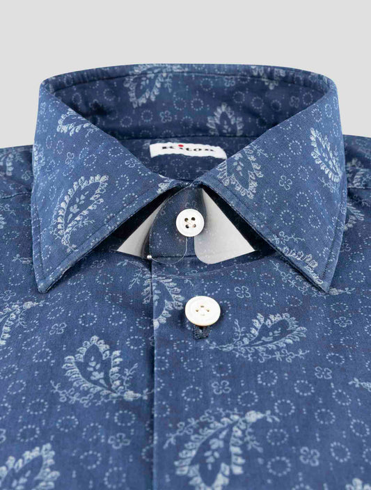 Kiton Blue Floral Cotton Shirt - Handmade Italian Regular Fit