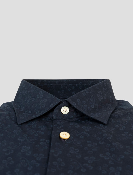 Kiton Handmade Cotton Dress Shirt Blue Floral Italian Premium