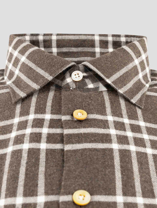 Kiton Premium Cotton Shirt Blue Brown Check - Italian Made
