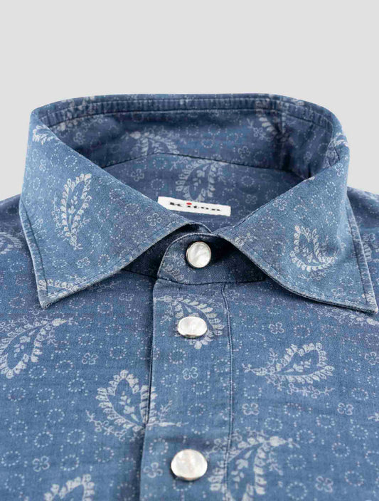Kiton Premium Blue Cotton Shirt - Italian Handmade Men's Dress Shirt