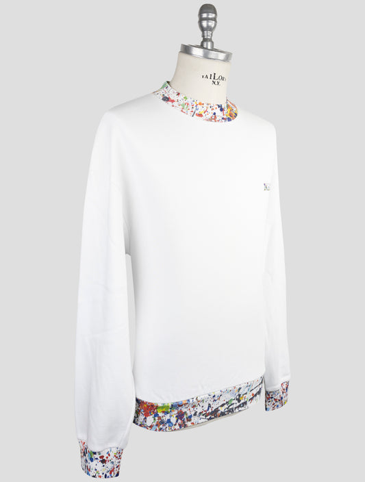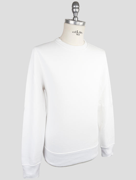 Kiton KNT Premium White Cotton Crewneck Sweater Made in Italy