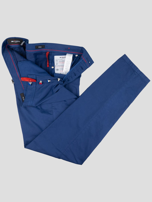 Kiton Blue Cotton Lyocell Stretch Pants - Italian Handmade Trousers