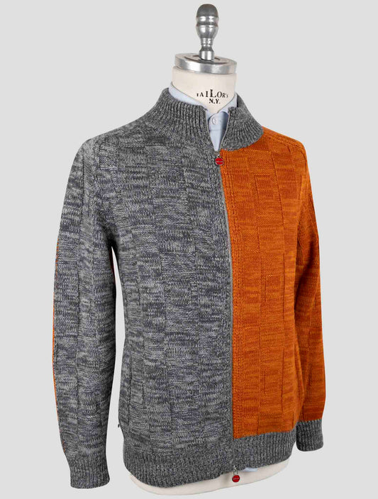 Pull en Cachemire Gris Orange à Zip Complet Kiton