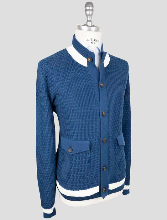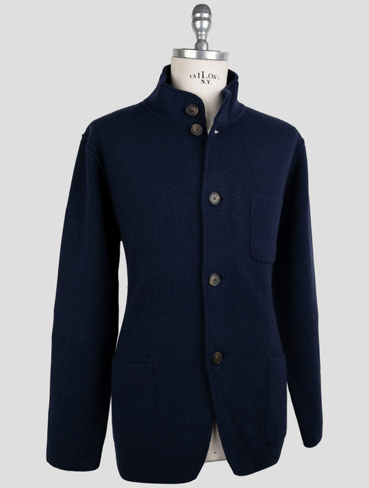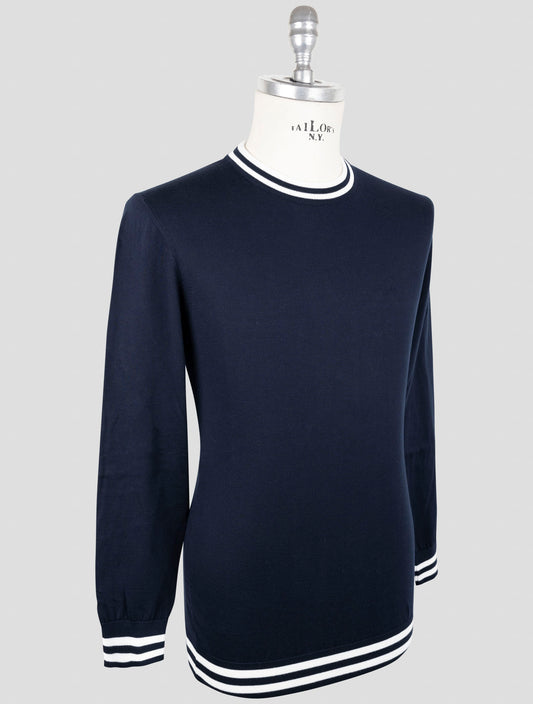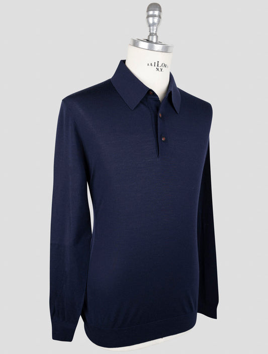 Polo en Laine Bleu Kiton avec Motif Diamant