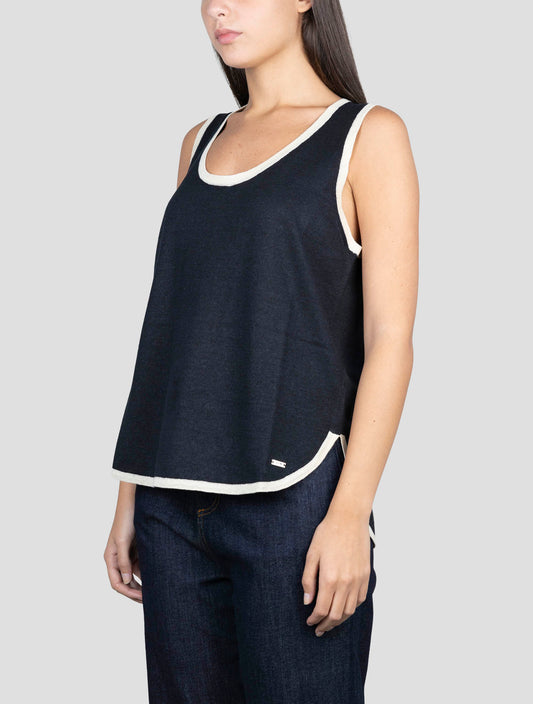 Kiton Dark Blue Linen Cotton Tank Top - Handmade Italian