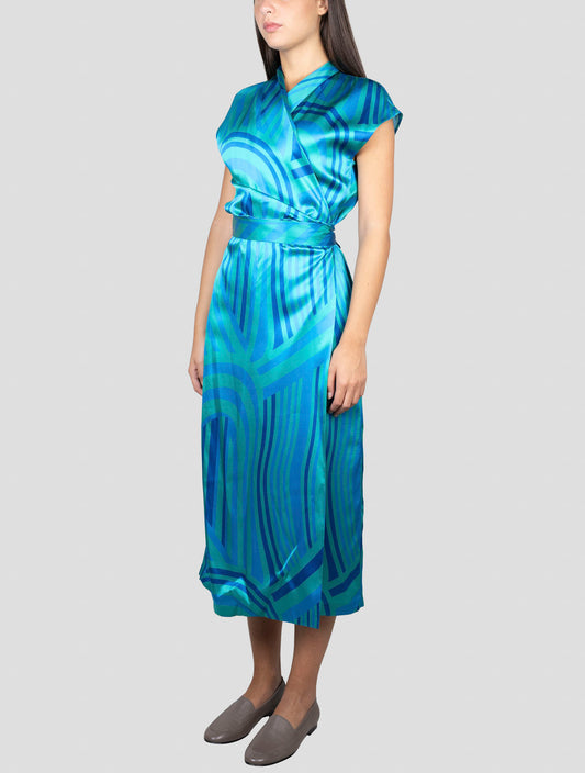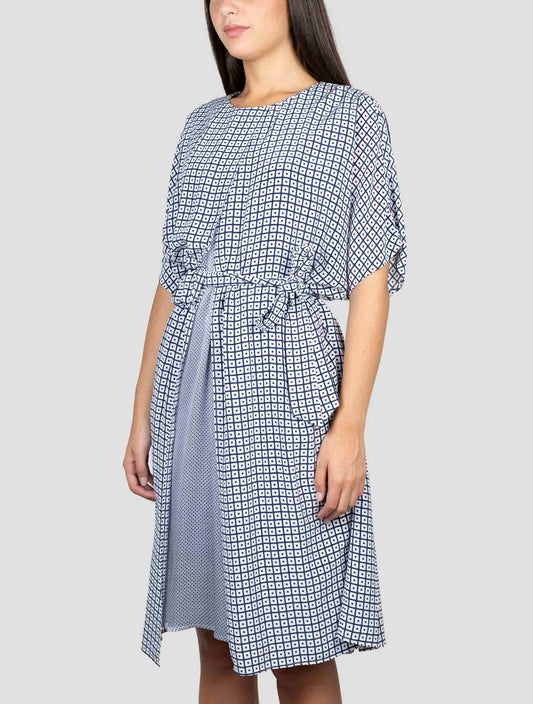 Kiton Blue White Silk Dress - Handmade Italian Geometric Pattern