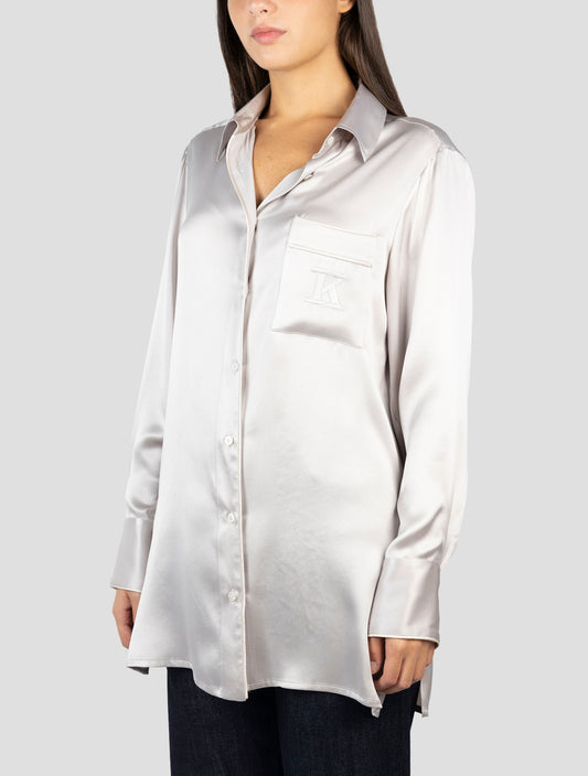 Kiton Women's Gray Silk Shirt - 100% Pure Silk Blouse