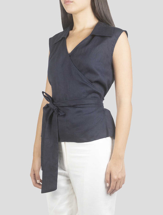 Kiton Women's Premium Blue Linen Shirt - Italian Handmade