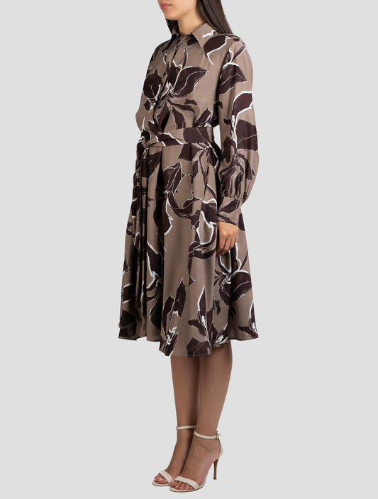 Kiton Brown Silk Dress - Handmade Italian Luxury Floral