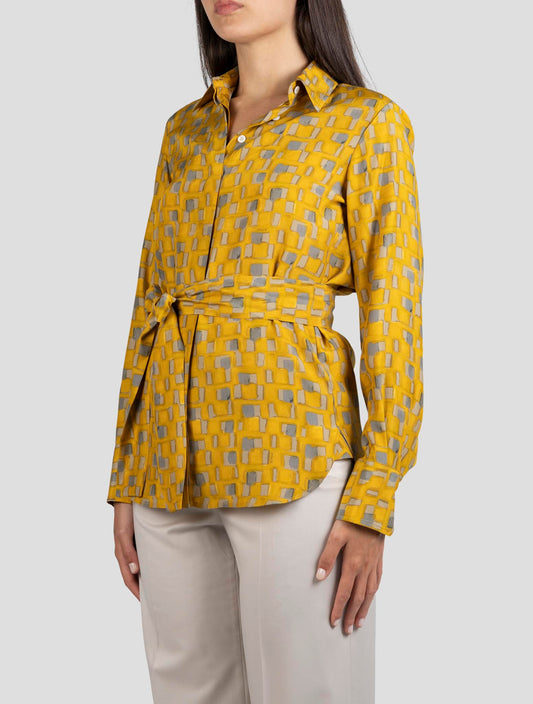 Kiton Luminous Yellow 100% Silk Women's Shirt - Handmade Italian