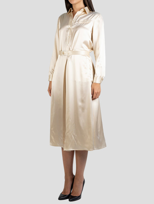 Robe Beige 100% Soie Kiton - Luxe Italien Femmes Fait Main