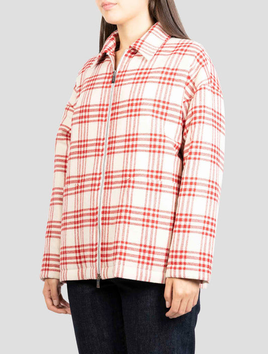 Kiton Luxury Wool Silk Cashmere Plaid Coat White Red Women