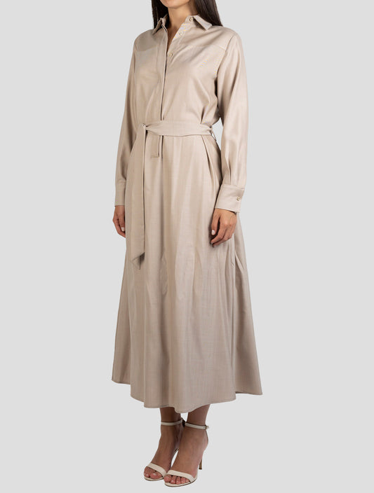 Kiton Beige Virgin Wool Silk Dress - Italian Luxury Regular Fit
